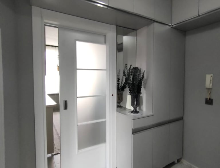 Modern mutfak ve banyo dolapları, panel kapılar, duşakabin, parke, özel ölçülerde mobilyalar.